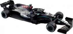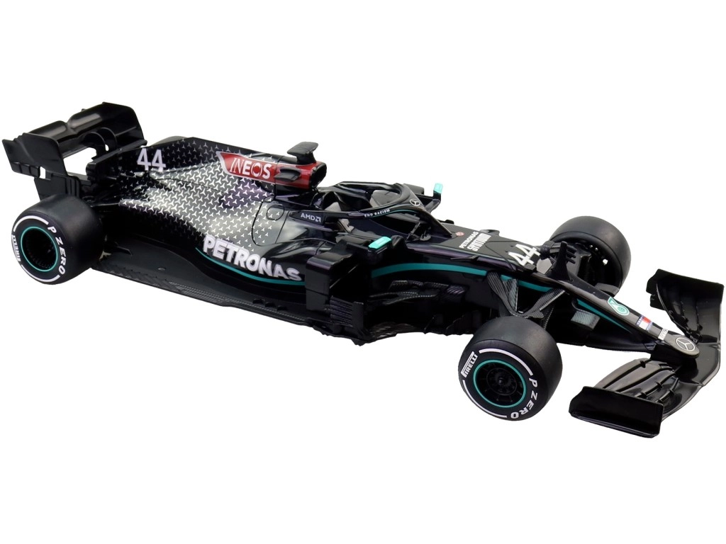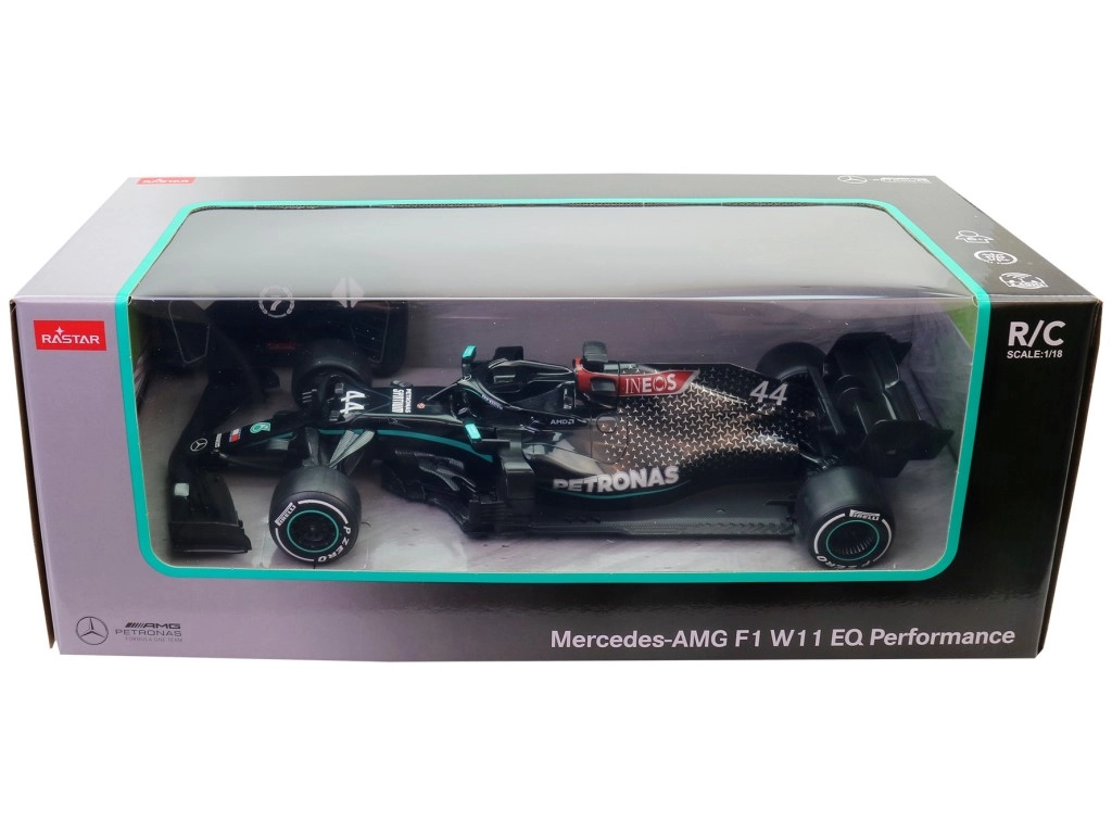 Részletes aerodinamika, slick gumik és a MERCEDES‑AMG F1 W11 EQ autentikus színei fokozzák az élményt versenyzés és polcos kiállítás közben is.