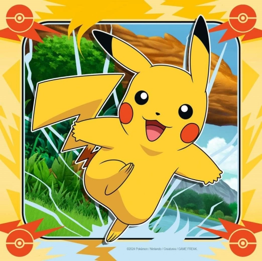 RAVENSBURGER Pokémon gyerek puzzle: 3×49 darab, minőségi kivitel, pontos elemek és élénk színek. Minden kirakott puzzle mérete 21 × 21 cm.