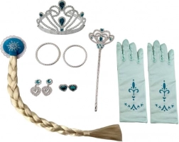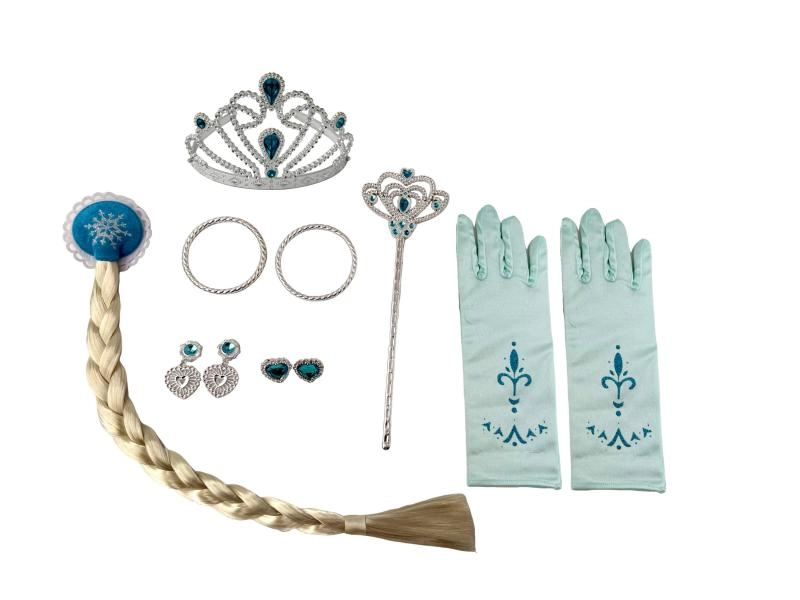 Változz egy pillanat alatt kedvenc hercegnőddé ezzel a bájos ékszerszettel, amelyhez hosszú, rögzíthető copf tartozik. Ideális jelmezekhez, farsangra és otthoni szerepjátékhoz. Csillogó ékszerek, hosszú, fonott copf és könnyű felhelyezés – öröm minden kis parádésnak.