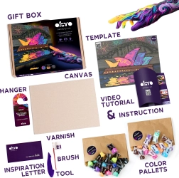 - Teljes készlet – vászon, útmutató, eszköz, massza, lakk és ecset
