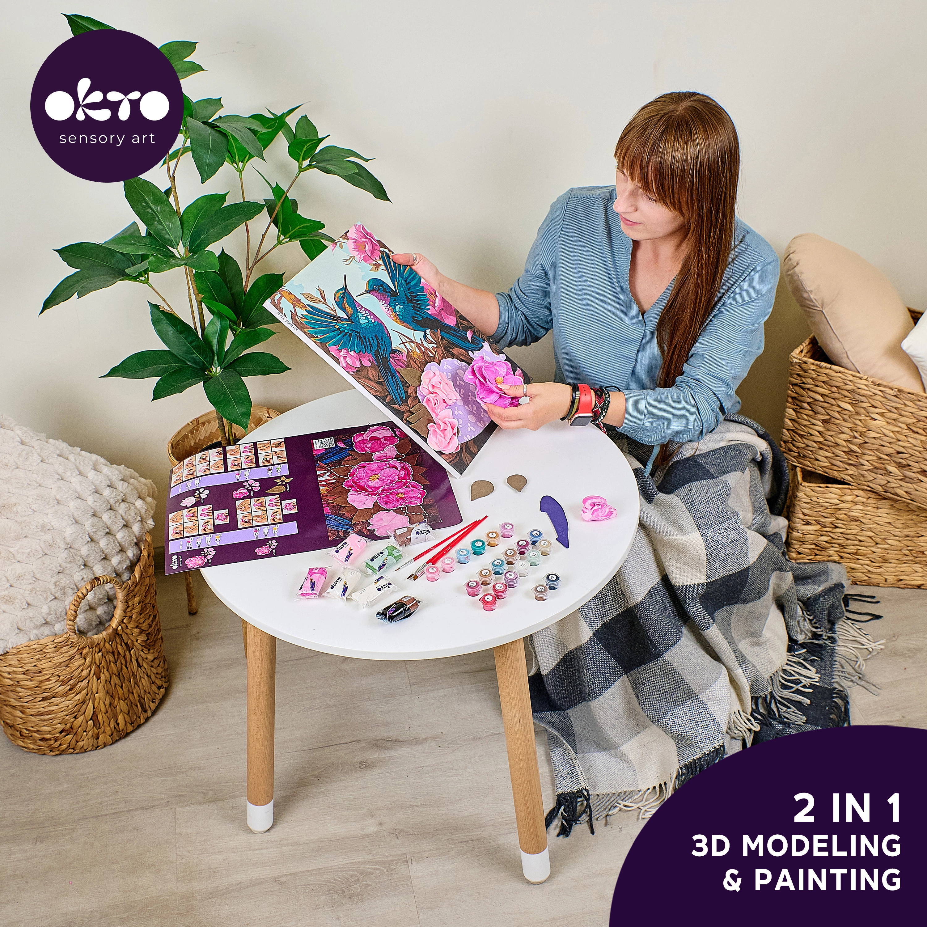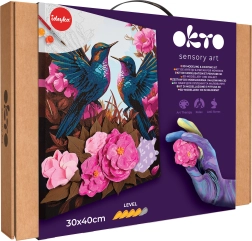 Alkossa meg saját műalkotását az Okto kreatív készletével – számok szerinti festés és 3D modellezés a „Hummingbirds in Love” képből, 30 × 40 cm méretben. A festés és formázás kombinációja a kolibrimotívumnak plastikus 3D hatást ad. A 4/5 nehézségi szint örömet okoz a lelkes alkotóknak, akik kihívást és minőségi végeredményt keresnek.