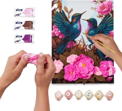A „Hummingbirds in Love” kép ötvözi a pihentető számok szerinti festést és a szórakoztató 3D modellezést. A vásznon található egyértelmű jelöléseknek és a mellékelt útmutatónak köszönhetően lépésről lépésre megfestheti a részletgazdag motívumot, majd kiválasztott elemeket formázhat ki látványos térhatásért.