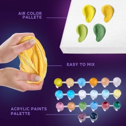 - Teljes tartalom: vászon, képes útmutató, modellező eszköz, levegőn száradó modellező anyag, festékkészlet, ecset
