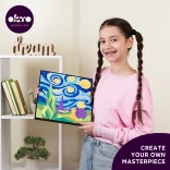 Kreatív készlet gyerekeknek és felnőtteknek – varázslatos képet készíthetsz A kis herceg: éjszakai égbolt témában formázó massza és számozott útmutatás segítségével. Egyszerű, szórakoztató és pihentető alkotás vásznon, 29 × 29 cm méretben, teljes tartozékkal a csomagban.