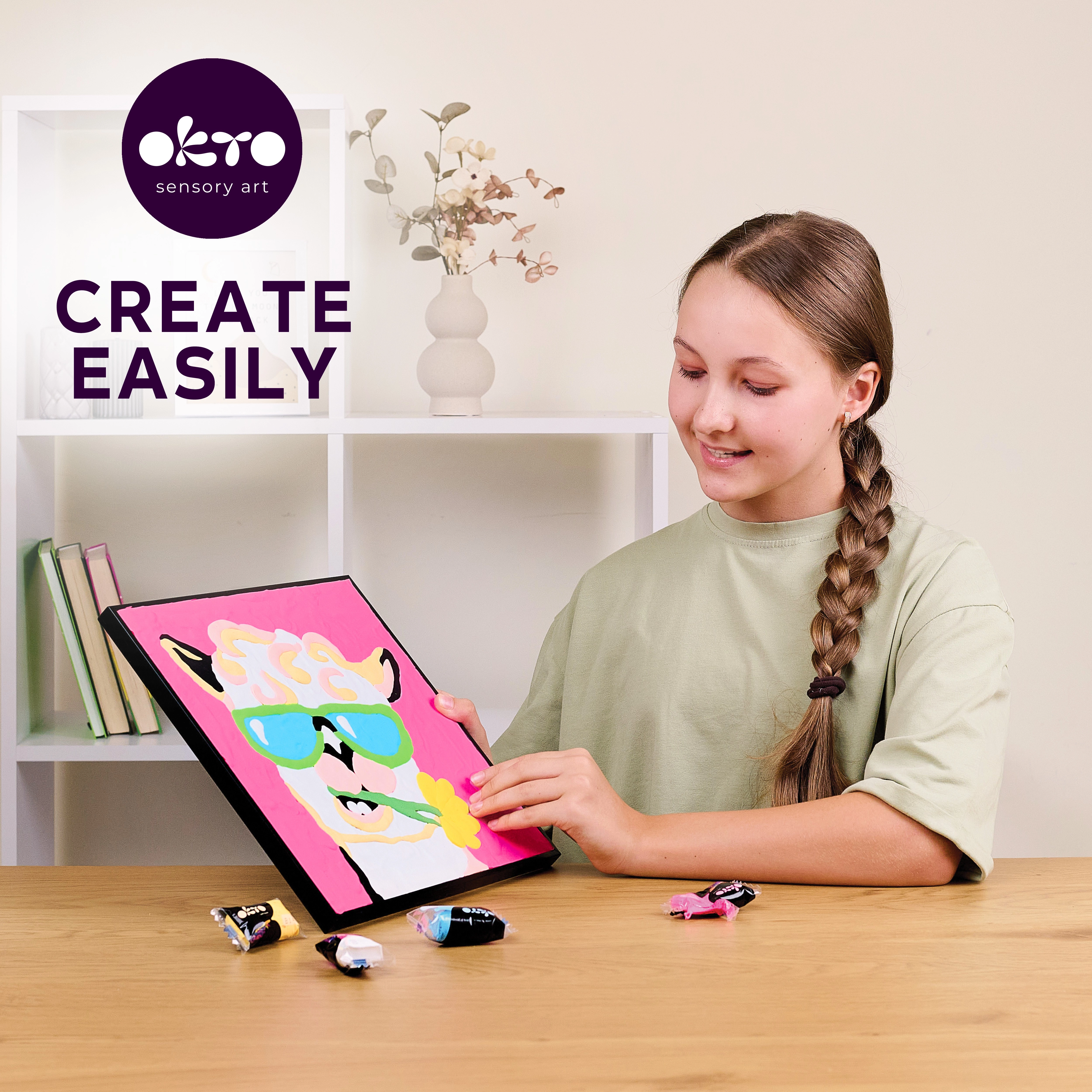 Fedezd fel az alkotás szórakoztató módját plasztikus modellező gyurmával, amely egyedi struktúrát ad a képnek. A számoknak köszönhetően könnyedén haladsz lépésről lépésre, és előzetes tapasztalat nélkül is remek eredményt érhetsz el. A bájos láma motívum jól illik gyerekszobába vagy eredeti ajándéknak.