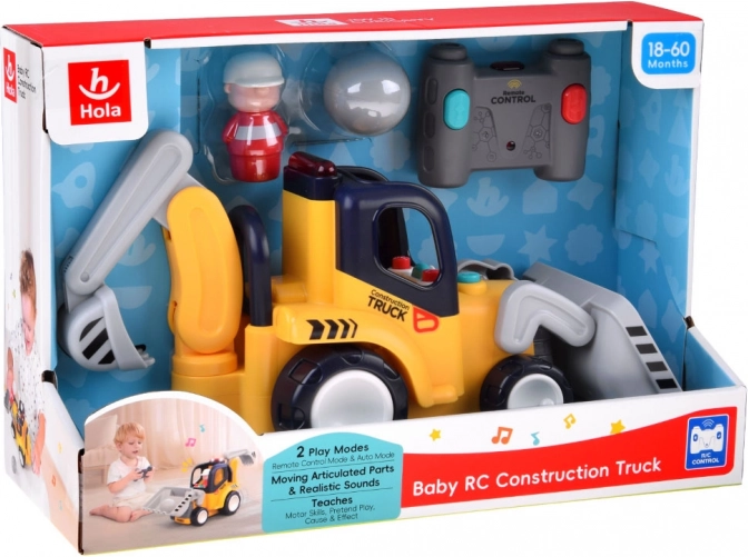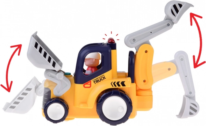 A modell automatikus módot kínál „ütközz és menj” funkcióval az önálló mozgáshoz, valamint távirányítási módot kétirányú vezérlővel. A mozgatható első kanál és a csuklós ásókanál valósághű hangokat indít. A csomag része egy sofőr figura (hang- és fénykísérettel indítja a haladást), valamint egy kis labda még több játéklehetőséghez.