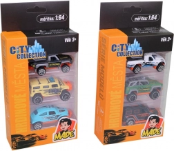 Ez a készlet három részletgazdag kisautót tartalmaz a népszerű 1:64 méretarányban, amelyek ideálisak otthoni versenyekhez és a gyűjtemény bővítéséhez. A fém és műanyag tartós kombinációja hosszú élettartamot és remek megjelenést biztosít.