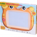 Szórakoztató és oktató jellegű 33 cm-es varázslatos rajztábla magyar csomagolással a kis művészek örömére. 2 színváltozatban (rózsaszín, narancssárga) kapható, praktikus rajzoló tollal, mágneses pecsétekkel és egyszerű csúszkás törléssel – papír és rendetlenség nélkül.