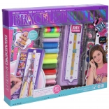 Minden egy kompakt dobozban kapott helyet, amely nemcsak tárolásra, hanem kényelmes fonáshoz is szolgál. Válasszon a különböző színű zsinórok közül, kombinálja a gyöngyöket, és díszítse a kész művet matricákkal ízlése szerint.