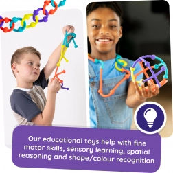 - Sokoldalú játék: a rugalmas formák könnyen kapcsolódnak és tartják az alakjukat.