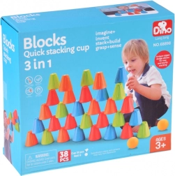 Ez a sokoldalú készlet órákon át tartó aktív szórakozást nyújt a gyerekeknek. A telt színű (zöld, kék, narancs, piros) kúpos poharak könnyűek, tartósak, formájuknak köszönhetően kiválóan rétegezhetők és egymásra rakhatók. A külső bordázott felület javítja a fogást, míg a formázott belső mélyedések megkönnyítik az elemek stabil összekapcsolását.