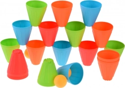 Szórakoztató és kreatív szett színes poharakkal és könnyű labdákkal gyerekeknek, amely fejleszti a koordinációs készségeket, a finommotorikát és a kreativitást. A csúszásgátló bordázásnak köszönhetően a poharak jól kézben tarthatók, és könnyen rakosgathatók és építhetők különféle konstrukciókká. A készlet ideális ügyességi játékokra, a színek tanulására, valamint szórakozásra otthon és a szabadban.