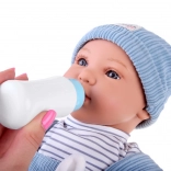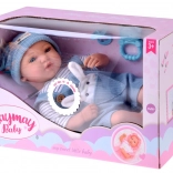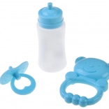 A szett mindent tartalmaz a valósághű játékhoz: cumisüveg etetéshez, pelenkacsomag és mackó alakú rágóka/gyöngykarika. Az egész csomag díszdobozban érkezik – remek ajándékötlet.