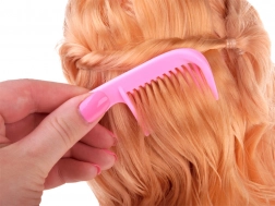 Puha, hullámos szőke haj, amely ideális fésüléshez, fonáshoz és színes csatokkal való díszítéshez.