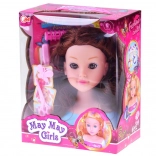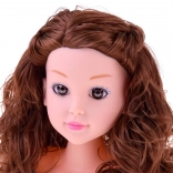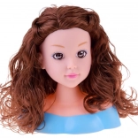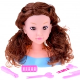 fésülhető fej kiegészítőkkel gyerekeknek, barna hajú baba 20 cm