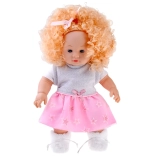 Az Alicja baba ideális társ a mindennapi játékhoz és a megnyugtató ölelésekhez. Puha textilteste, rugalmas végtagjai és részletgazdag arca van kék szemecskékkel. A feltűnő szőke göndör sörény rózsaszín masnival bájt kölcsönöz és fésülésre, frizurázásra hív.