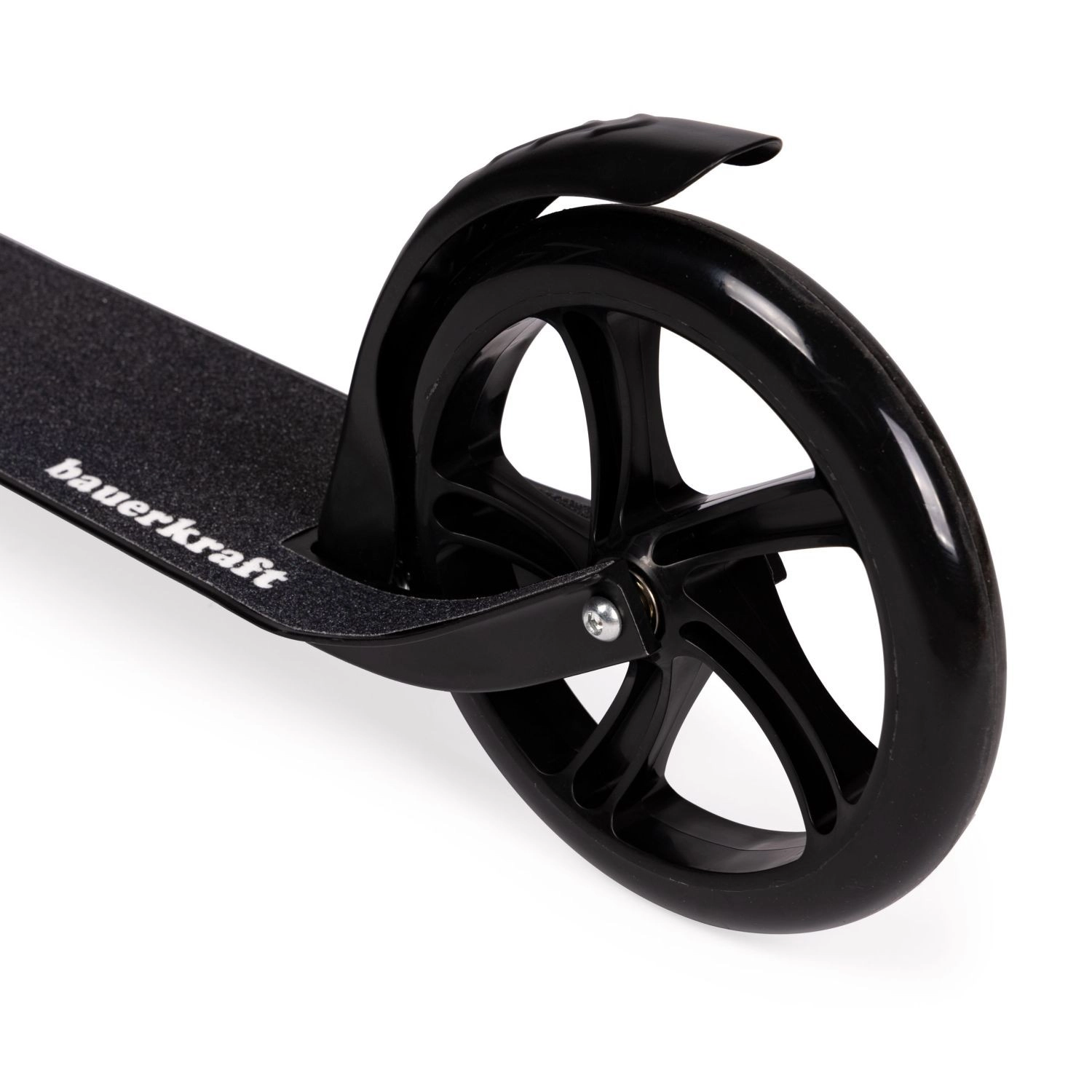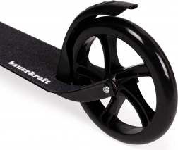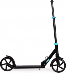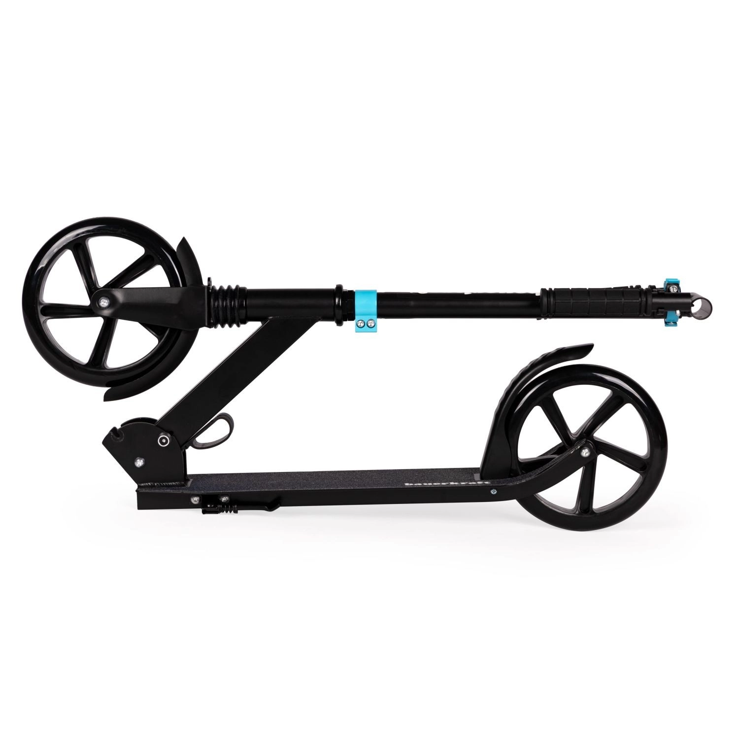 Ez az összecsukható roller könnyű alumíniumból készült, és sima, kényelmes haladást kínál aszfalton, kerékpárutakon és járdán. Az első rugós felfüggesztés csillapítja a vibrációt, a nagy 200 mm-es PU kerekek ABEC–7 csapágyakkal pedig egyenletes és stabil gördülést biztosítanak. A hátsó sárvédő fékként szolgál a biztos megálláshoz, és véd a fröccsenő víztől.