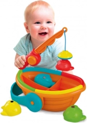 - Csónak/tároló, mágneses horgászbot, 4 színes halacska