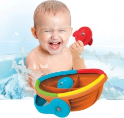 A csónak praktikus tárolóként szolgál a halacskáknak, és egyben úszik is, így a gyerekek a kádban is sok mókát élvezhetnek vele. Ízléses dizájnja és lágy tónusai barátságosak a gyermeki érzékelés számára, az újrahasznosított anyag pedig az ökotudatos szülőknek is örömet szerez.