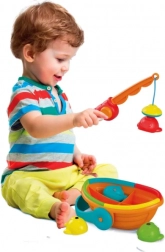 Szórakoztató logikai játék a legkisebbeknek: a gyerekek 4 színes halacskát fognak ki mágneses horgászbottal, majd a csónak megfelelő rekeszeibe helyezik őket. Fejleszti a koordinációs képességeket, a logikus gondolkodást és a színek tanulását. Újrahasznosított műanyagból készült, a Play For Future szellemében, finom színekkel, amelyek ideálisak a totyogók számára. A csónak úszik a vízen – fürdéshez is tökéletes.