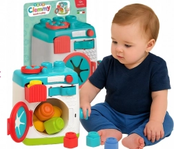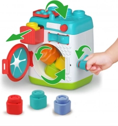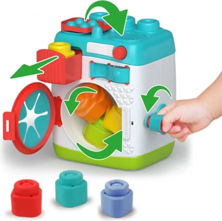 Ismerkedj meg ezzel a varázslatos játékkal, amely ötvözi az interaktív mechanikus működést a biztonságos, puha Clemmy kockákkal. A gyerekek az oldalsó kerék forgatásával figyelhetik a „mosás” effektust, miközben természetes módon gyakorolják a szem–kéz koordinációt és a logikus gondolkodást. A mosógép élethű megjelenése egyben ösztönzi a háztartási szerepjátékokat.
