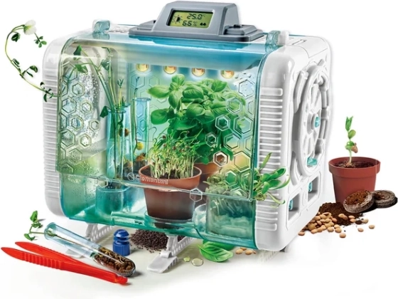 Ez az okos üvegház játékot és tanulást kapcsol össze. A gyerekek valódi botanikai kísérleteket próbálhatnak ki, beállíthatnak 3 különböző növekedési módot, és lépésről lépésre megismerhetik, mire van szükségük a növényeknek a csírázáshoz és a fejlődéshez. Az integrált szenzorok folyamatosan mérik a kulcsfontosságú feltételeket, és áttekinthetően megjelenítik azokat az LCD kijelzőn.