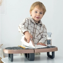 A műanyag vasaló gombja „klikk-klik” hangot ad, a gyerek permetező pedig tovább fokozza a vasalós szerepjáték hitelességét.