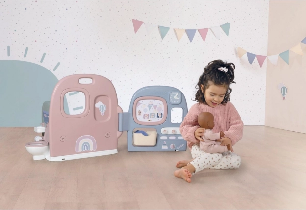 A SMOBY BABY CARE bájos babázós játszósarok, amely számtalan játékszcenáriót kínál – a higiéniai szokások gyakorlásától a etetésen át egészen a pihenésig. A praktikus elrendezés és a sok apró részlet támogatja az önállóságot, az empátiát és a finommotorika fejlődését.