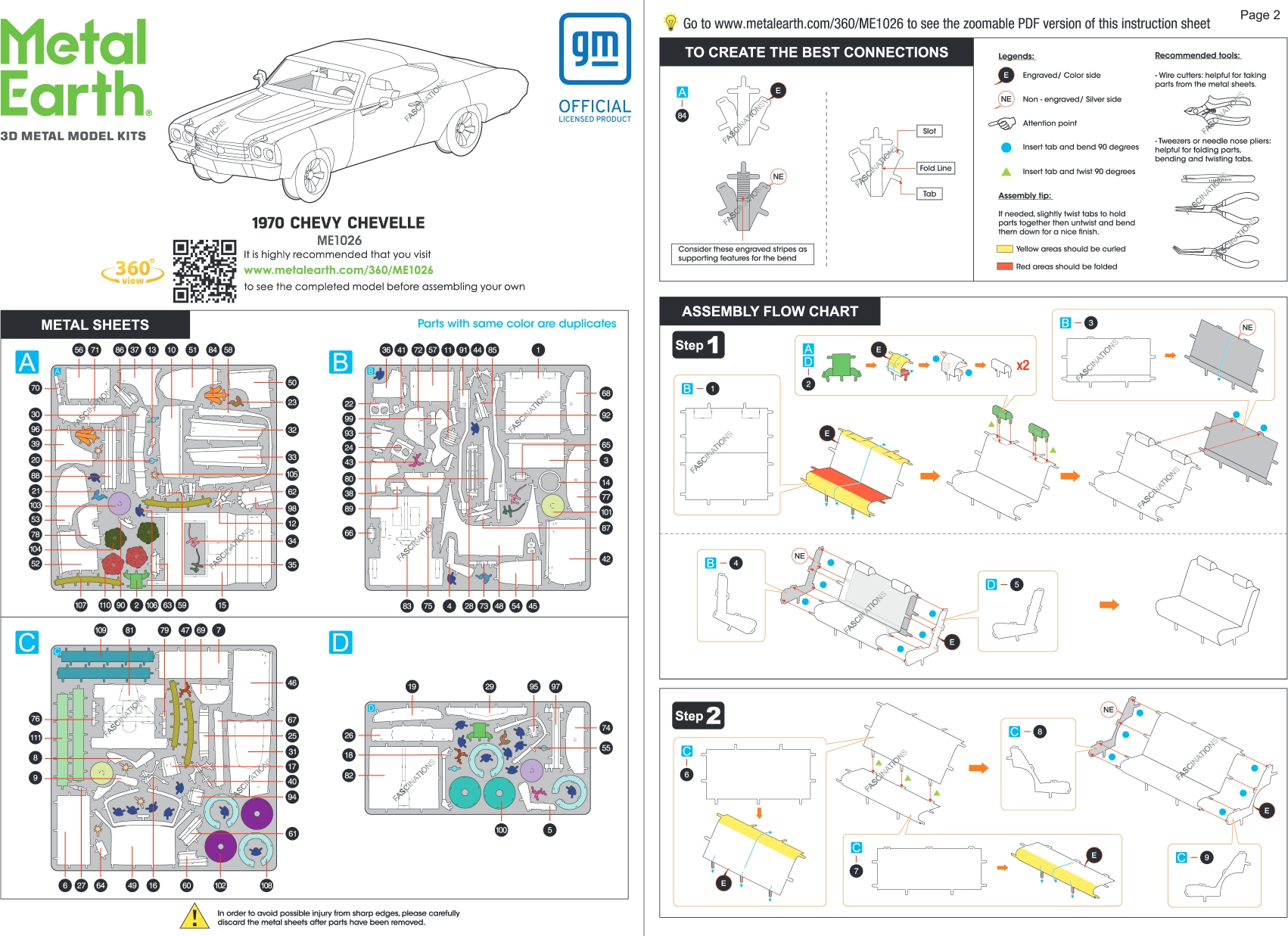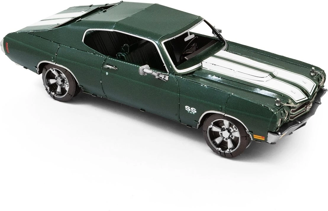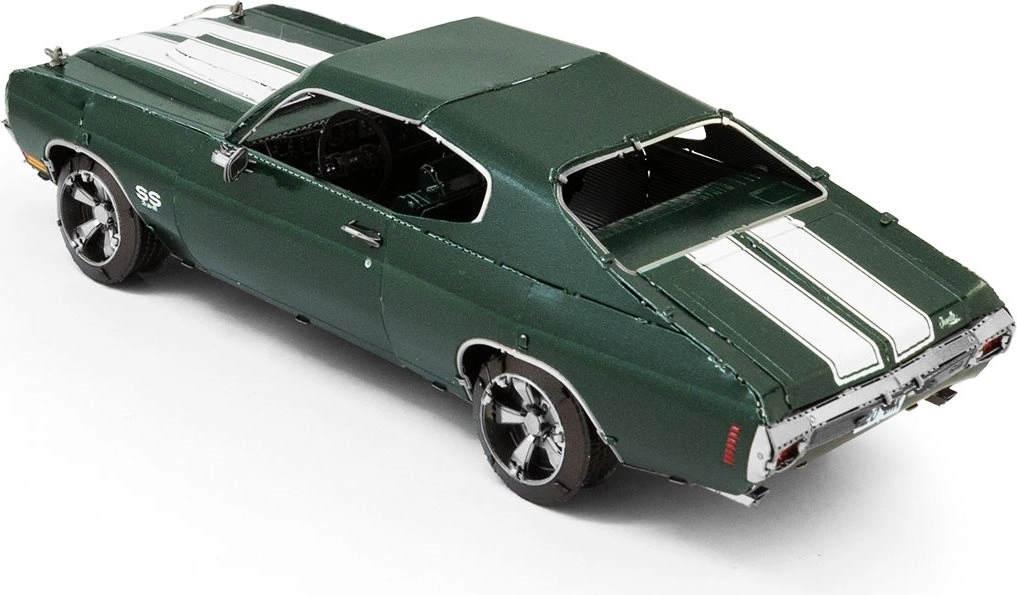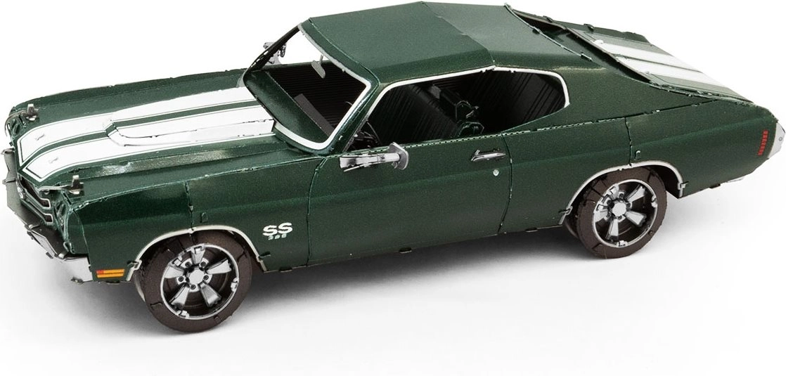 Fedezd fel a METAL EARTH fém építőkészletek varázsát, és készíts hű miniatűrt a legendás 1970 Chevrolet Chevelle muscle carról. Az alkatrészek rozsdamentes acél lapokból pattinthatók ki, és zárakkal illeszthetők össze – ragasztó nélkül. A precíz lézergravírozás autentikus megjelenést ad a modellnek.