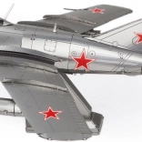 A rozsdamentes acél alkatrészek finoman, lézerrel vannak gravírozva, ez hű élethű panelozást és emblémákat eredményez. A végeredmény egy figyelemfelkeltő fém MiG–15 modell autentikus megjelenéssel.