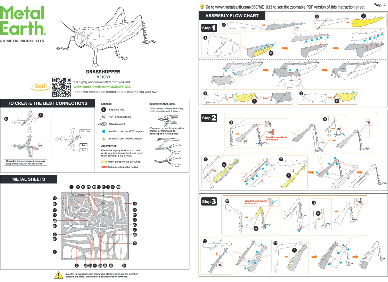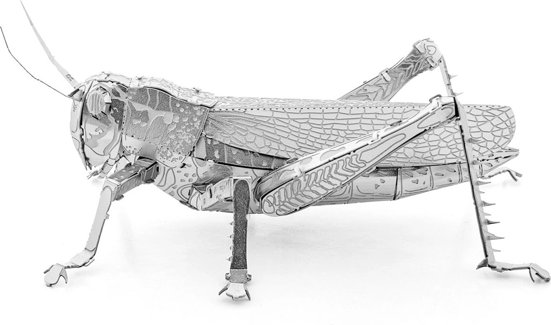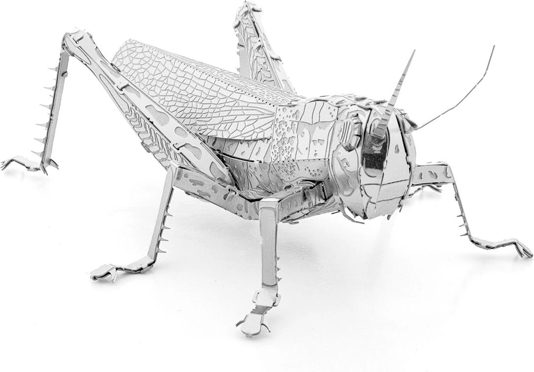 Élvezd a METAL EARTH fém 3D puzzle összeépítését, és alakítsd a sík acéllapokat részletgazdag mezei szöcskévé. A precíz lézergravírozásnak köszönhetően kiemelkednek a szárnyak textúrái, a tagolt test és a lábak tüskéi – az eredmény meglepően élethű, ideális dizájn dekorációnak vagy gyűjtői darabnak.