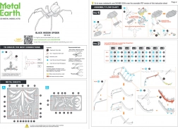 A METAL EARTH fém 3D puzzle-jeivel a lapos acéllemezekből látványos fekete özvegy modell készíthető. Az elemeket könnyen ki lehet pattintani a lemezekből, és zárakkal illeszkednek – ragasztó nélkül. A részletes lézergravírozásnak köszönhetően élethűen jelennek meg a test és a lábak textúrái, a kész modell pedig remek dekoráció, ajándék és gyűjtői darab.