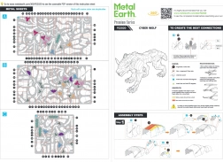 Négyzet alakú acéllapokból lépésről lépésre állíthatod össze a kibernetikus farkas élethű 3D modelljét éles vonalakkal, artikulált ízületekkel és átgondolt mechanikával. A lézergravírozásnak köszönhetően finom panelek, rácsok és szegecselés emelik ki a modell technológiai megjelenését. Ideális stílusos dekorációként asztalra vagy polcra.
