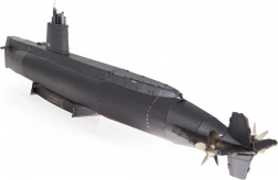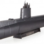 A részletes gravírozás és a törzsszegmentek kiemelik a tengeralattjáró technológiáját, beleértve a tornyot, periszkópokat és a torpedószekciókat – lenyűgöző látvány bármely polcon.