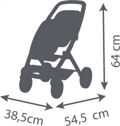 A babakocsi két ülést kínál, melyek közül az első biztonsági övvel van felszerelve a baba stabil rögzítéséhez. A robusztus szintetikus szövet huzatok nedves szivaccsal egyszerűen letörölhetők. 42 cm-ig alkalmas babák számára. Baba nélkül szállítva.