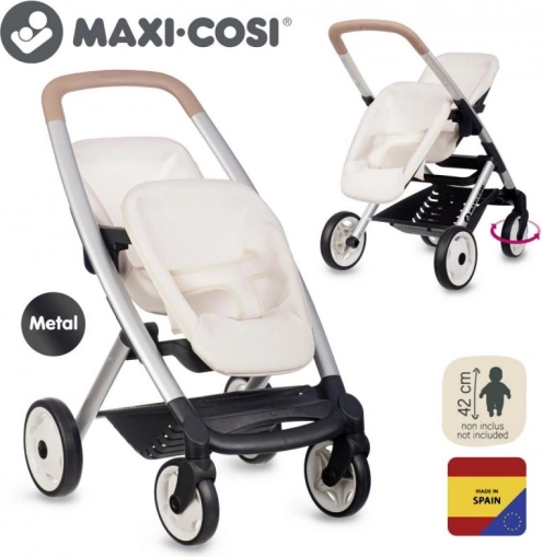 Ajándékozza meg a gyerekeket élethű szülős játékkal a SMOBY Maxi Cosi ikres sport babakocsival elegáns bézs színben. A könnyű váz, a csendes kerekek és az ergonomikus tolókar kényelmes kezelést biztosítanak a kis kezeknek is, miközben a minőségi anyagok hosszú élettartamot és könnyű karbantartást garantálnak.