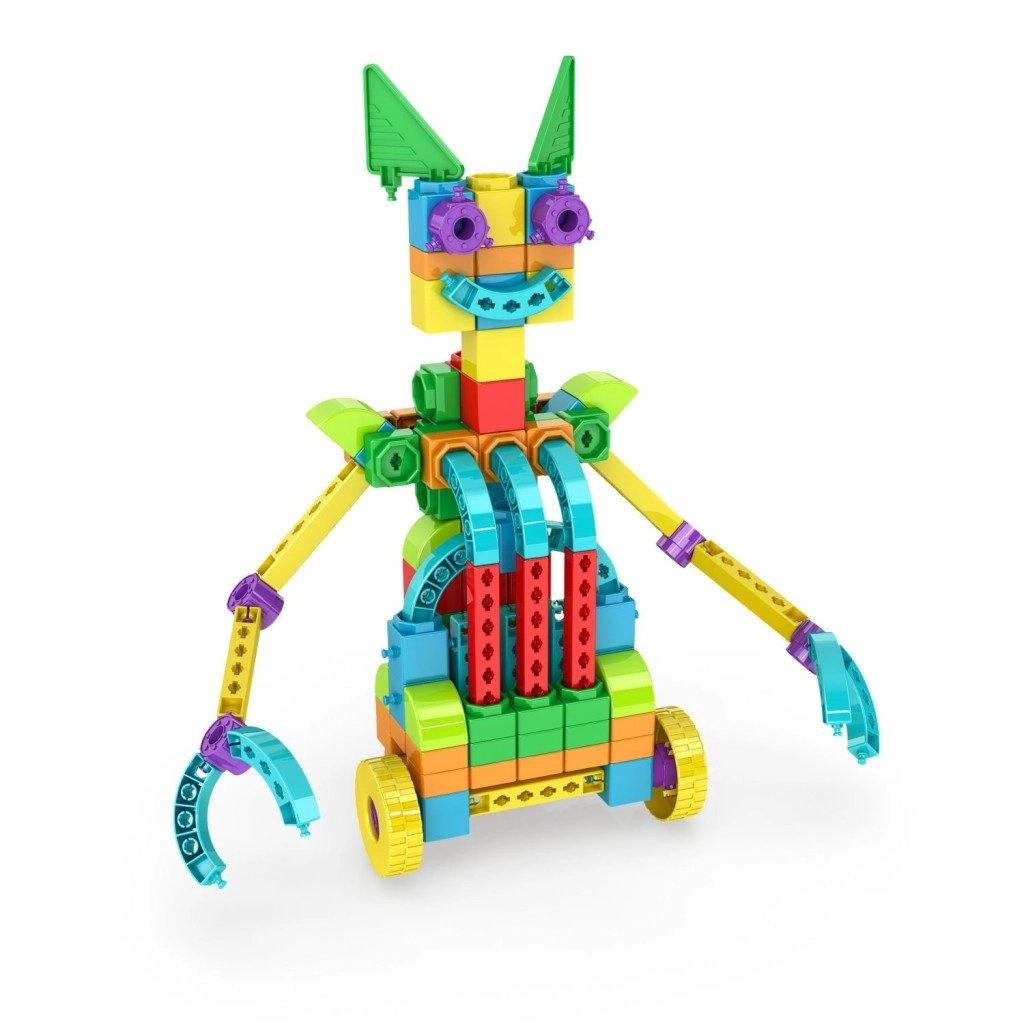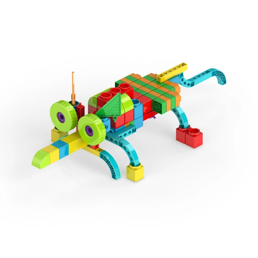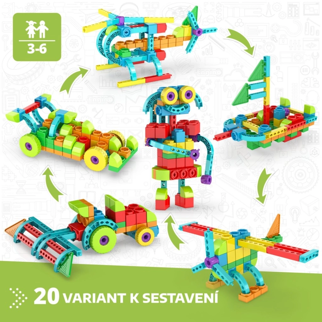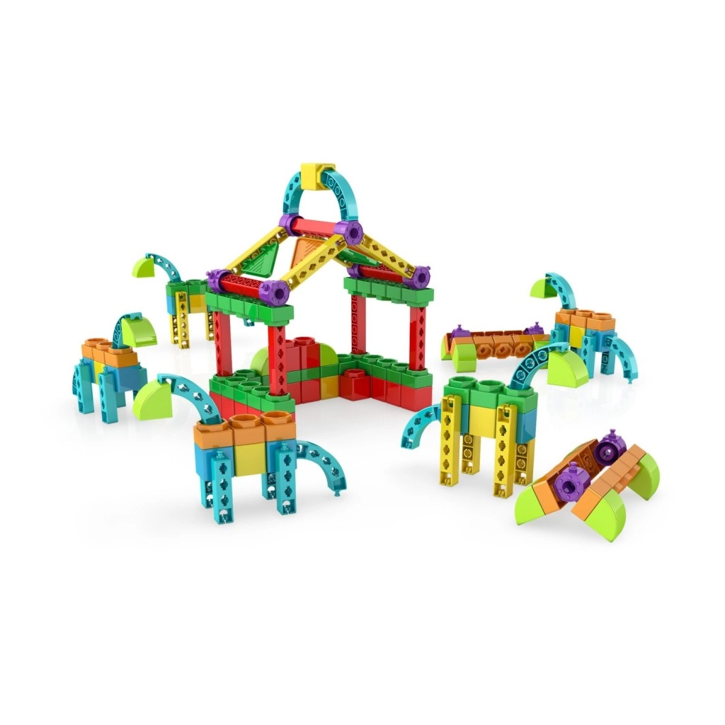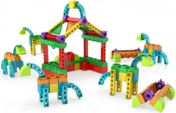 Nagy készlet színes blokkokkal és csatlakozókkal, amely támogatja a fantáziát és a finommotorikát. A gyerekek könnyedén építenek állatokat, figurákat és gépeket.