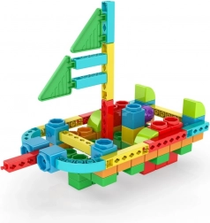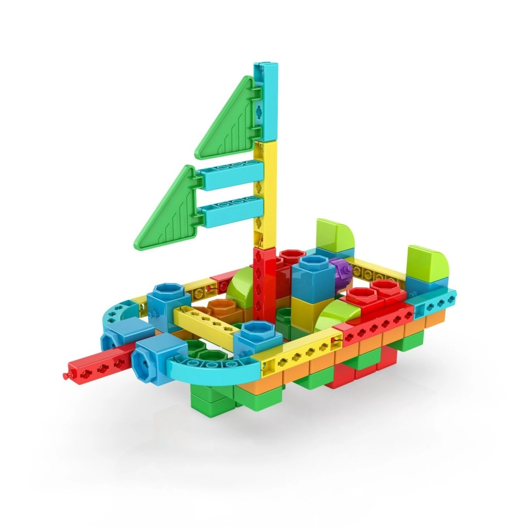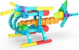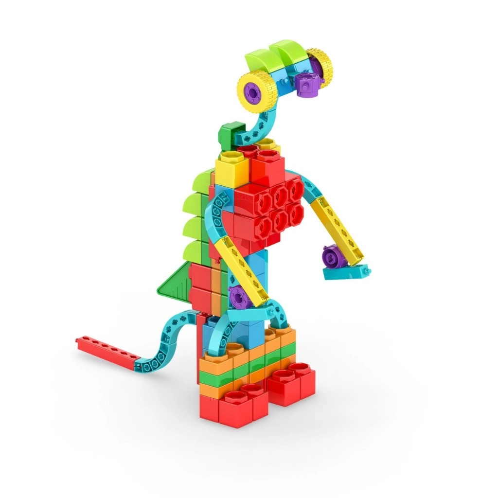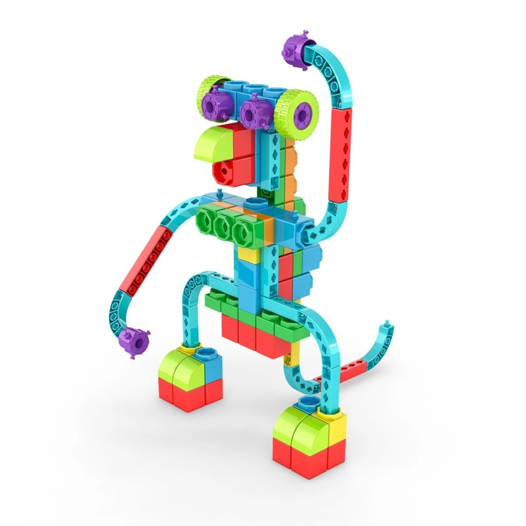 Nagy készlet színes blokkokkal és csatlakozókkal, amely támogatja a fantáziát és a finommotorikát. A gyerekek könnyedén építenek állatokat, figurákat és gépeket.