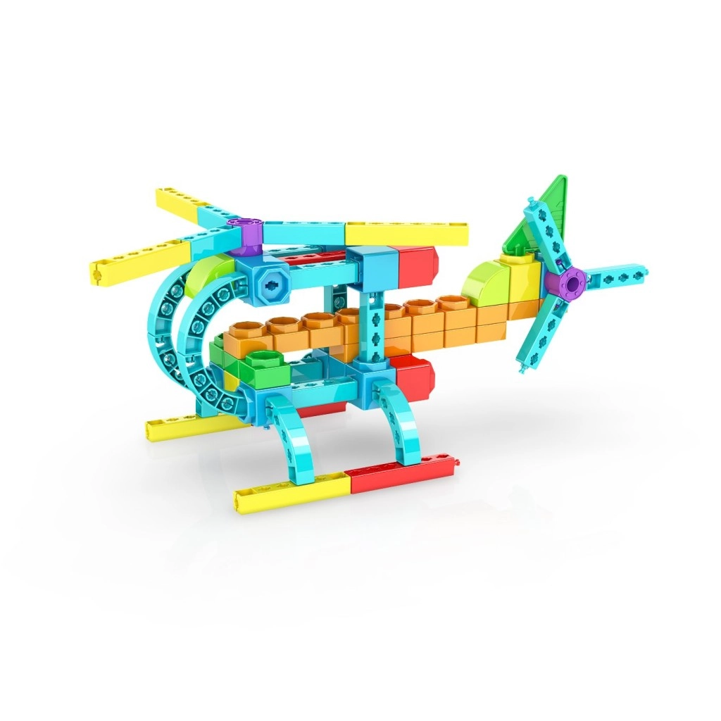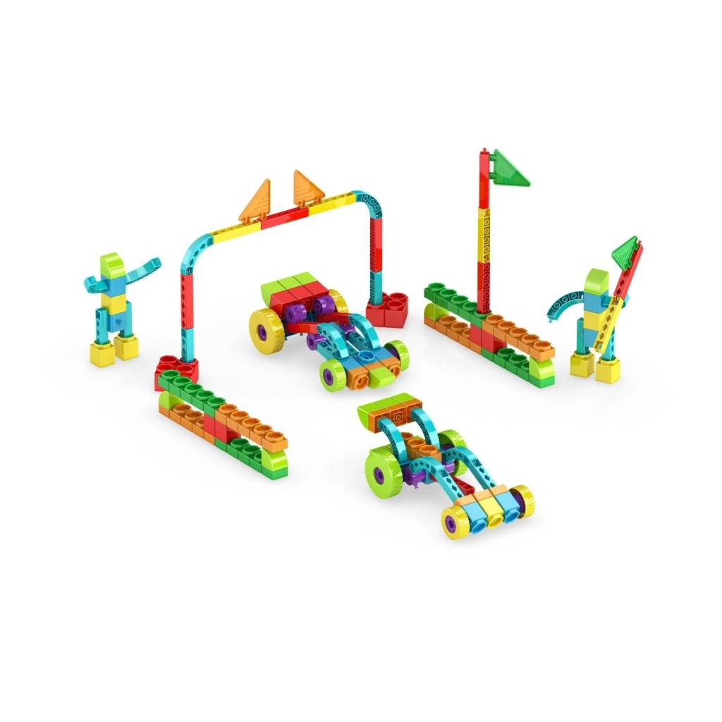Építs versenyautókat, helikoptert és más járműveket mozgó alkatrészekkel és kerekekkel – a még nagyobb szórakozásért és játékélményért.