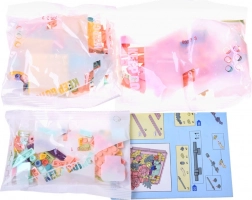 Építőkészlet elemei, keret/állvány motívumtól függően, válogató tasakok, képes útmutató
