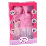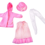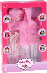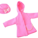 Az elegáns rózsaszín babaruhaszett 36–40 cm magas babákhoz készült, és tökéletesen ötvözi a stílust, a kényelmet és a könnyű kezelhetőséget. A finom rózsaszín-fehér kockás ruhát tüll fodor díszíti, a csipkés harisnya ünnepi hangulatot ad, a texturált kapucnis, zsebes kabátka pedig „hűvös napokon” is felmelegít a játék világában. A masnis kalapocska mindent szépen egységbe foglal.