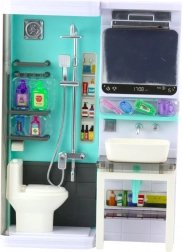 Ez a részletesen kidolgozott fürdőszobai szett a gyerekeket a mindennapi tevékenységek világába repíti. Találnak benne WC-t, megvilágított tükrös mosdót, zuhanyt és változatos kiegészítőket a test- és fogápoláshoz. Az interaktív fény- és hangeffektek még valósághűbbé és szórakoztatóbbá teszik a játékot.