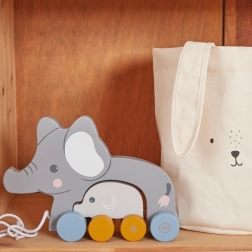 A Bieco márka stílusos húzós játéka mozgásra és felfedezésre ösztönzi a gyerekeket. A nagy és a kicsi elefánt stabil kerekeken könnyedén gurul, a pamut zsinór pedig kényelmes vezetést biztosít, bárhová is mennek. A rejtett kis elefánt egyszerűen kivehető, és önállóan is remek játék.
