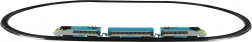 - Valósághű szerelvény két végmozdonnyal és középső személykocsival.