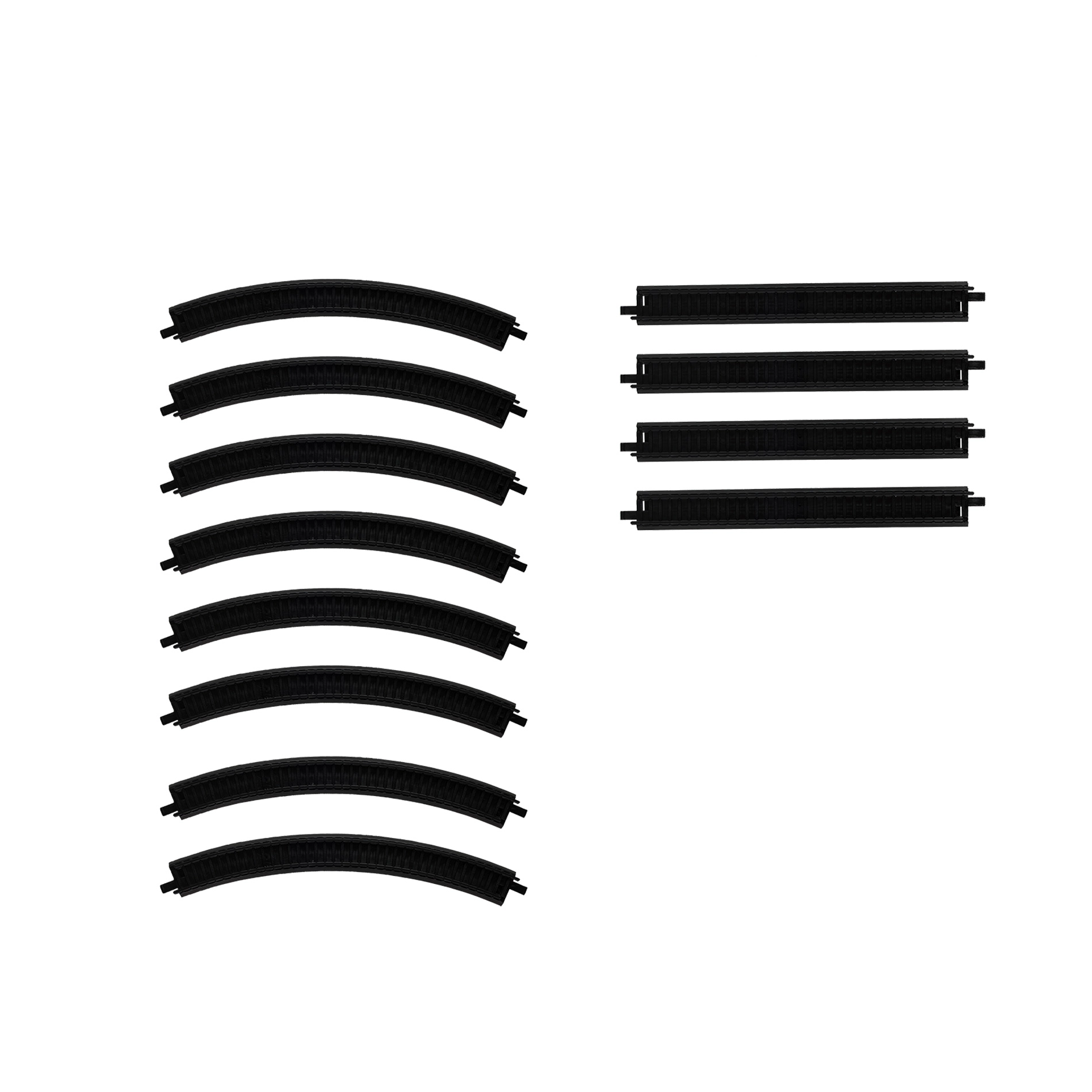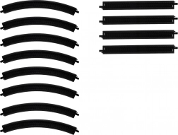 A készlet 8 íves és 4 egyenes sínje könnyűvé teszi az ovális pálya megépítését vagy a meglévő pálya bővítését. A sínek nyomtávolsága 1,4 cm a stabil futásért.