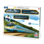 Építsd meg a saját vágányhálózatodat, és indulj útnak a valósághű Pendolino MINI vonatszerelvénnyel. A készlet tartalmaz első és hátsó mozdonyt, 1 személykocsit, valamint egyenes és íves síneket a pálya összeállításához akár 96 × 58 cm méretig. A mozdony 1× AA elemmel működik, és könnyen üzembe helyezhető a BE/KI kapcsolóval. Kompatibilis a REGIOJET MINI és a SLOVENSKÉ DRÁHY MINI vonatokkal.