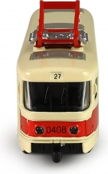 Ez a kb. 16 cm hosszú fém T3 villamos hűen idézi meg a városi sínek legendáját – a világ legelterjedtebb villamostípusát. A robusztus kivitel a precíz részletekkel, áramszedővel és két tónusú festéssel gyűjtői vitrinekhez és kreatív játékhoz is valósághű megjelenést ad.