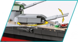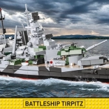 A fejlett építési technikáknak és új elemeknek köszönhetően mozgó hajócsavarok és kormányok, forgatható tornyok és emelhető/süllyeszthető lövegcsövek várnak. A csomag része egy masszív fekete állvány nyomtatott „Tirpitz” plakettel. Az építőkészlet nem igényel ragasztást vagy festést – mindent COBI kockákból raksz össze, amelyek más márkákkal is kompatibilisek.