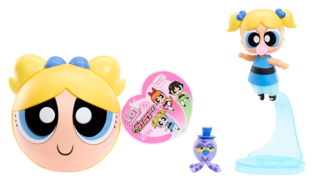 Fedezze fel a bájos együttműködést a L.O.L. Surprise és a POWERPUFF GIRLS között! Minden csomag egy Tots babát rejt, amelyet Blossom, Bubbles vagy Buttercup ihletett, tematikus kiegészítőkkel, „repülő” pózt lehetővé tevő állvánnyal és a kedvenc hősnő fejét formázó kerek tokkal. A termék véletlenszerűen kerül kiküldésre, az ár 1 darabra vonatkozik.