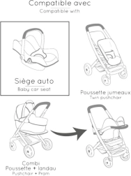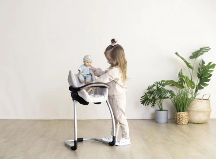 Praktikus, 3 az 1-ben kivitelű babaszett, amely autósülésként, hintaként és magas etetőszékként is szolgál. A váz elfordításával könnyen átalakítható, 42 cm-ig megfelelő babákhoz, és modern, bézs dizájnjával örömet szerez.